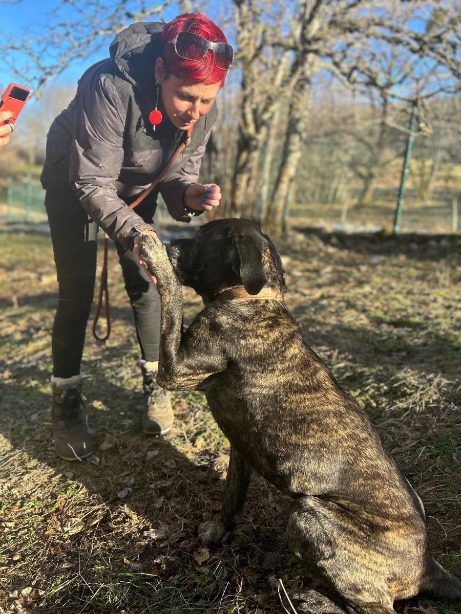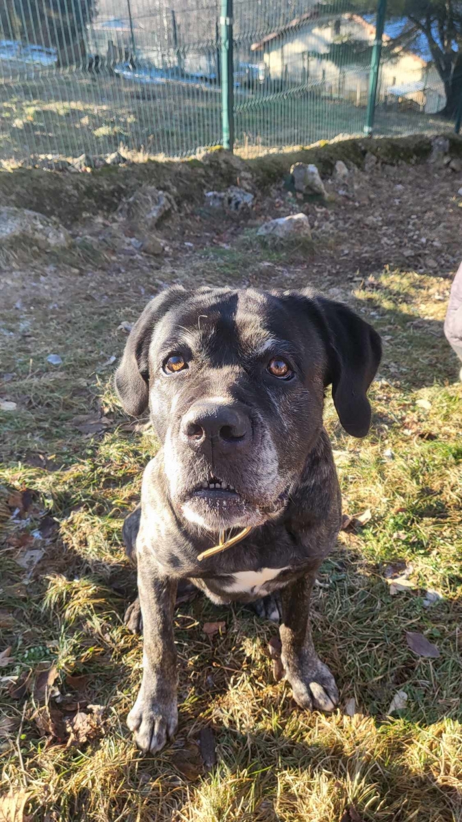 Voici Vicky, une adorable Cane Corso qui espère trouver sa famille idéale pour vivre ses vieux jours entourée d'amour et de câlins. Elle a une faiblesse pour le babybel et rêve de compagnons humains qui n'ont pas peur de son apparence imposante mais douce.