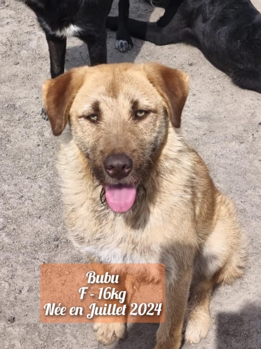 ? Caractère : Bubu ( se prononce Boubou ) est adorable, pleine de vie, joyeuse et joueuse. Elle aime les humains autant que ses copains chiens, et adore s’amuser. Elle est dynamique, sociable et très attachante.