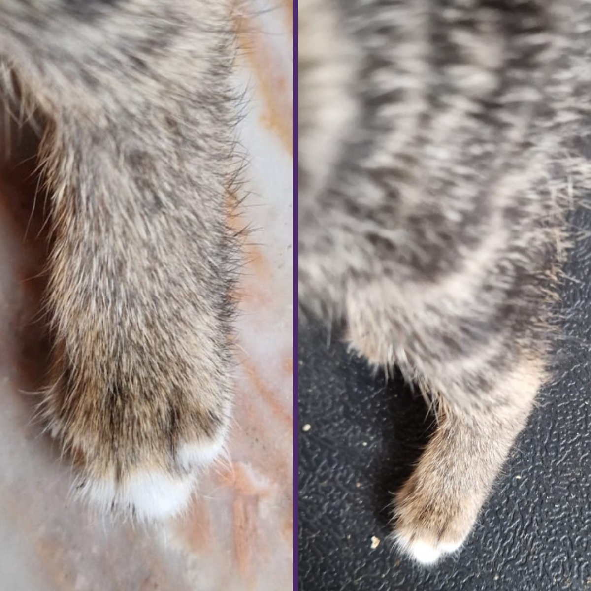 Anouk est observatrice et ne dit pas non à quelques caresses. Elle est rigolote car elle a le bout de sa patte arrière gauche blanche.