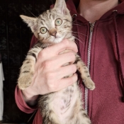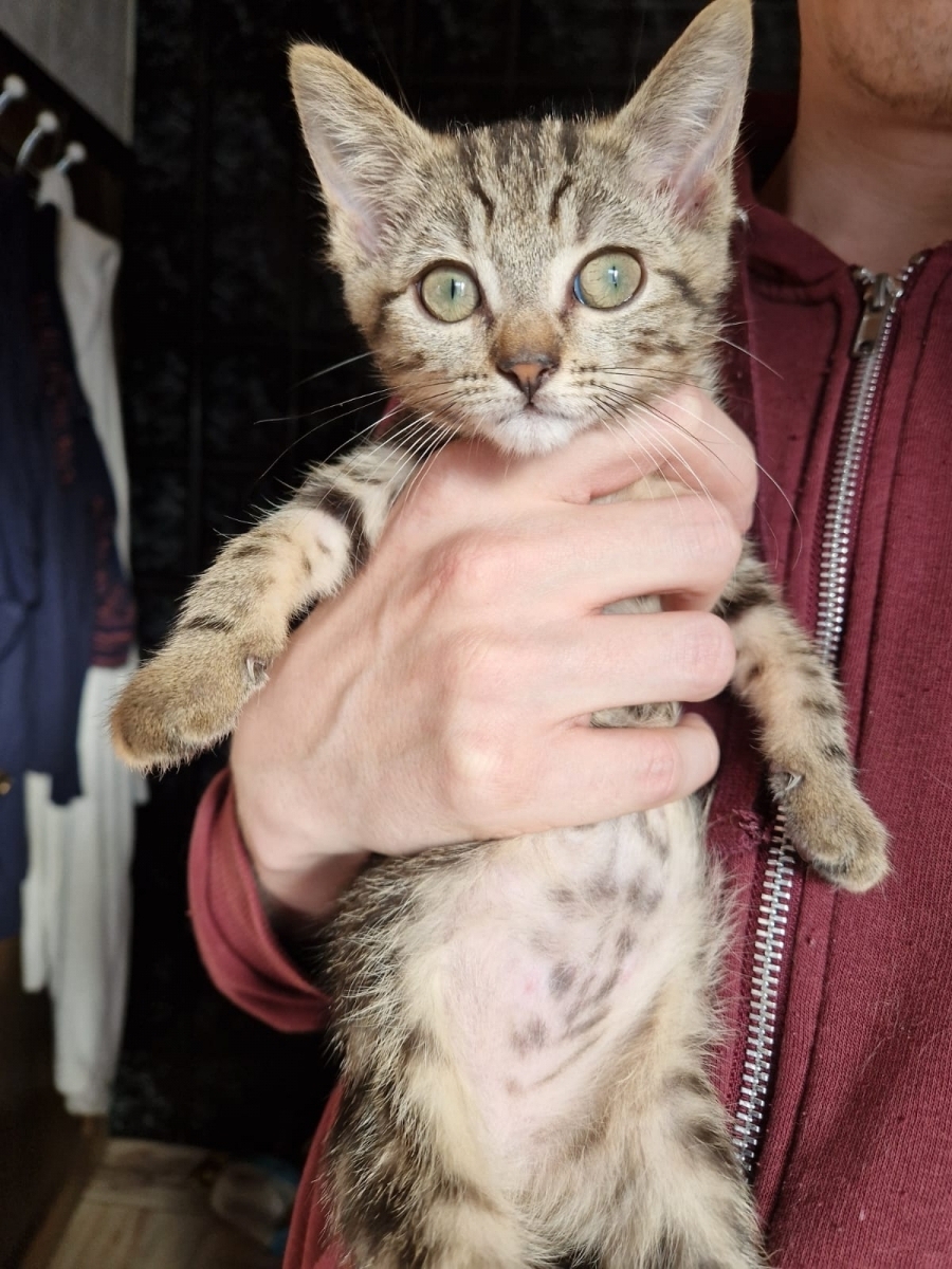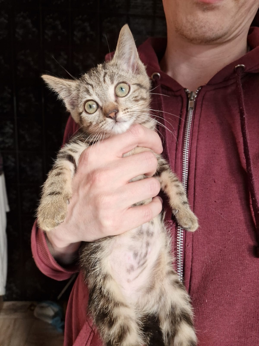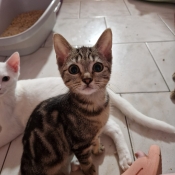Aïla est un chaton très affectueux, elle adore se laisser tomber sur le dos et montrer son bidou contrairement à son frère, elle n'aime pas trop qu'on y touche, il faudra donc se retenir (oui je sais c'est très tentant). Mais elle aime les papouilles sinon.