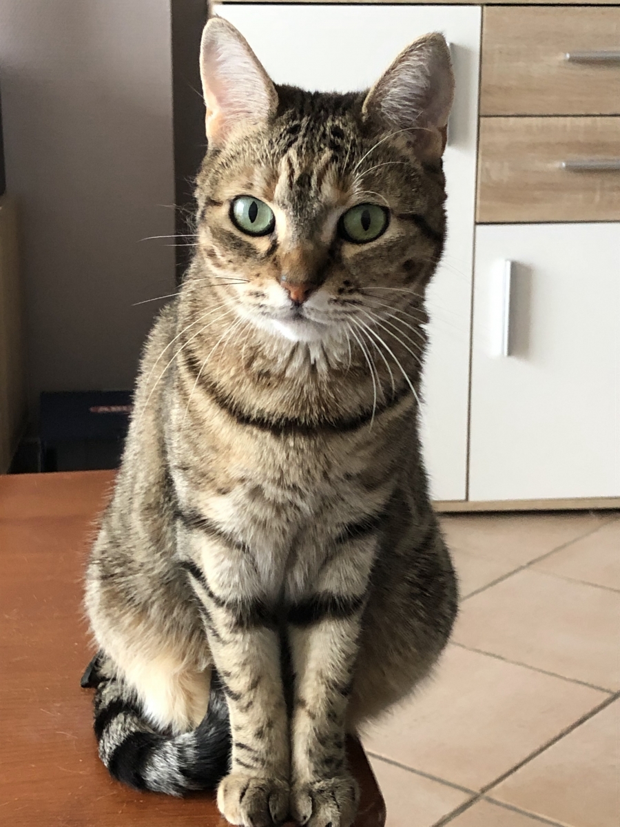 Early est une chatte recueillie errante voilà plusieurs années ; traumatisée par l'abandon, elle a un caractère un peu difficile et ne doit pas être brusquée ; elle est peureuse, anxieuse, et a besoin d'équilibre et de calme. Lorsqu'elle n'est pas stressée, elle est capable d'être câline avec un humain. Son placement est une urgence.