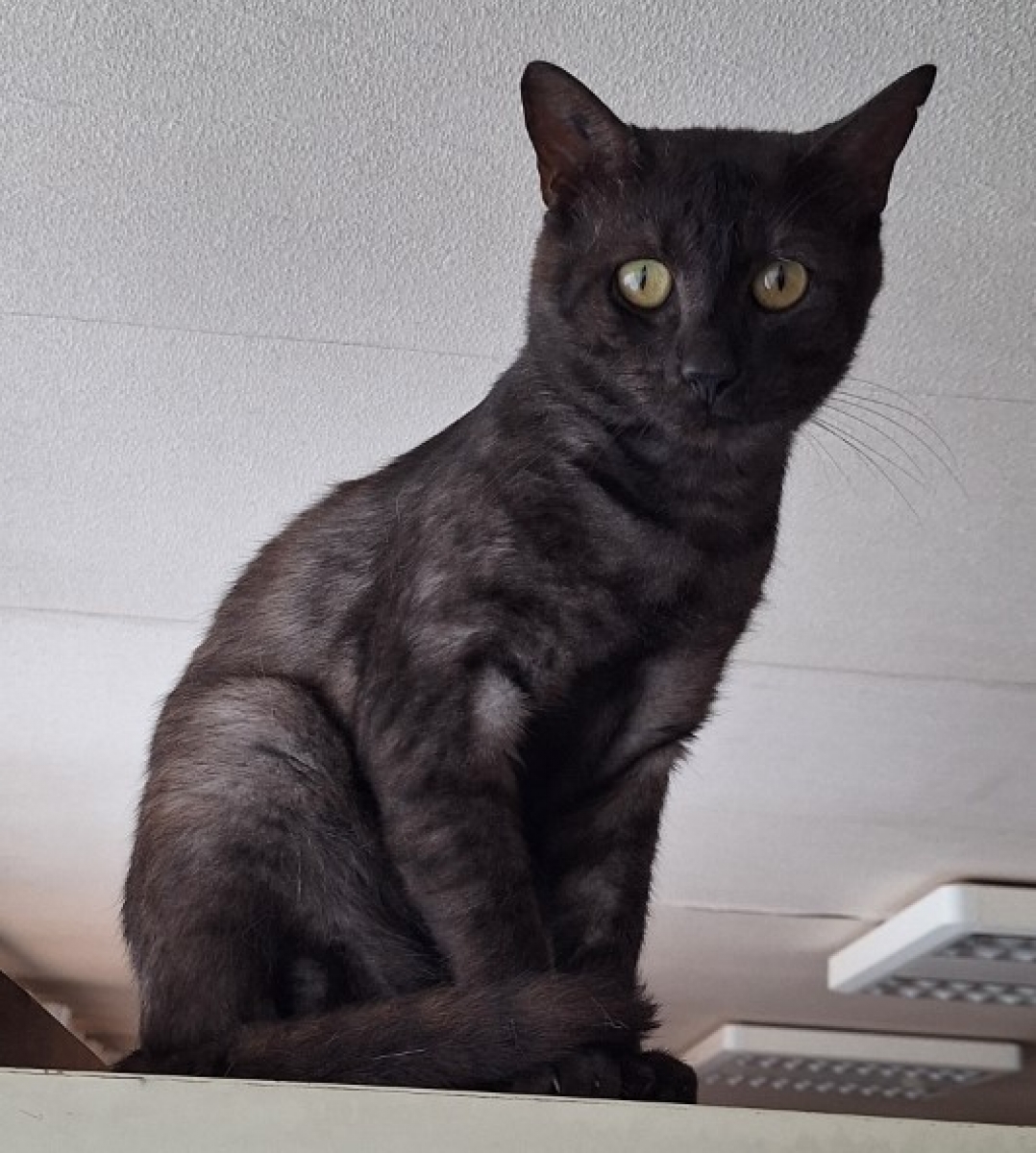 Réglisse est né le 1er mars 2024. Il a été déposé un jour d'ouverture devant la porte du bric-à-brac. C'est un chat calme, très timide mais il se soigne.