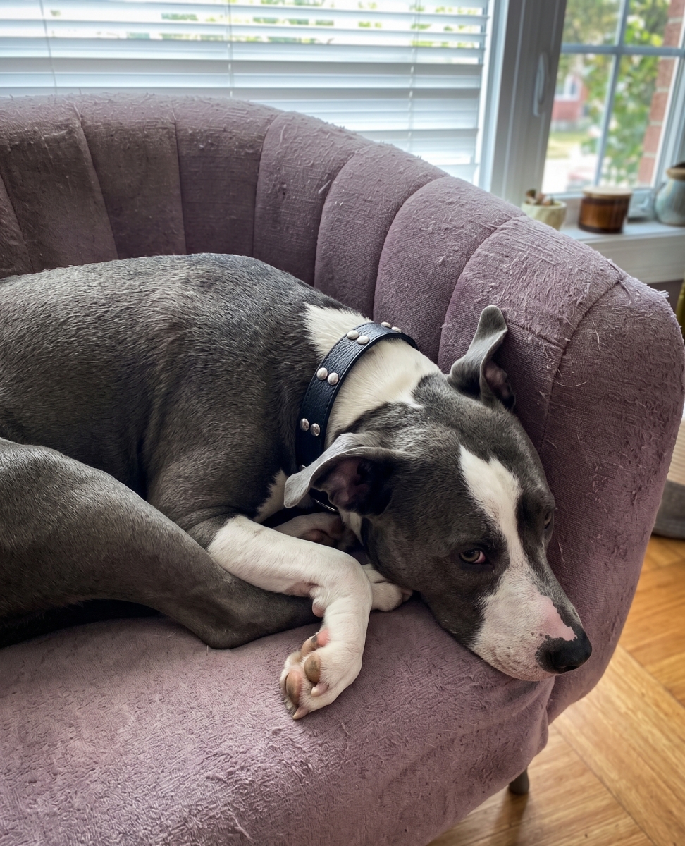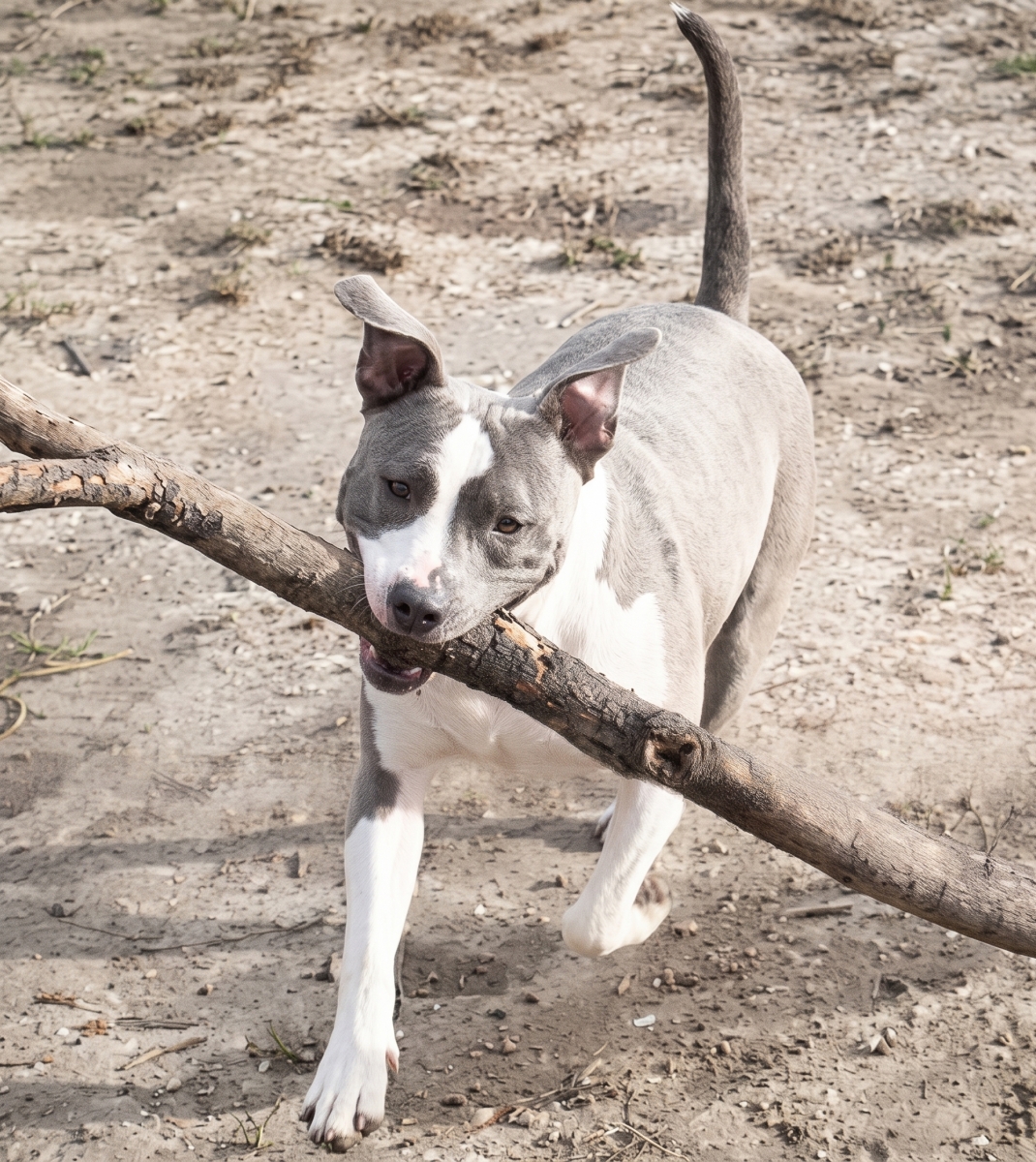 Histoire : Goliat est un American Staffordshire Terrier LOF de 14 ans. C’est un miraculé : Eliette l’a sauvé de l’euthanasie il y a 11 ans. Depuis, ils sont inséparables. Malheureusement, la santé d'Eliette décline et elle ne peut plus assurer ses besoins physiques. Goliat se retrouve confiné en appartement malgré son amour pour les promenades.