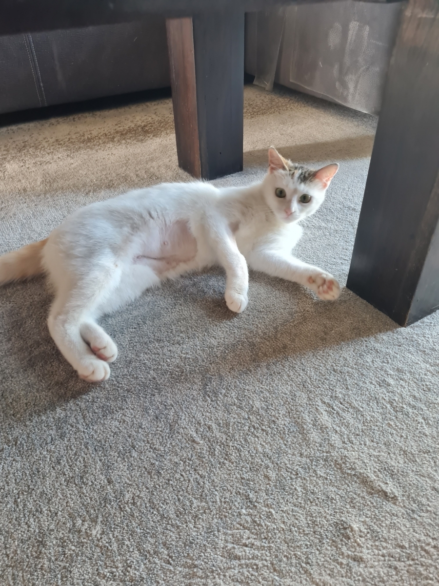 Elle est plutôt calme, adore rester dans son petit nid, s'allonger sur le canapé et a ses petits moments de folie !