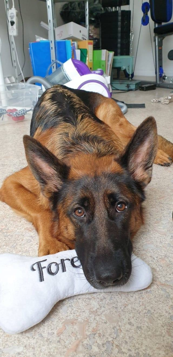 Tiens un joli sourire plein de crocs pour commencer les présentations. Je m'appelle Ollie, et toi ? Euh reste loin sinon je retrousse les babines ok ?... Comment ça je ne suis pas crédible dans le rôle de la méchante ? D'accord j'avoue, j'ai un corps de belle et forte berger allemand, qui cache une âme de trouillarde.... Je suis une fausse agressive, je camoufle juste ma peur. Mais ça marche plutôt bien il paraît.