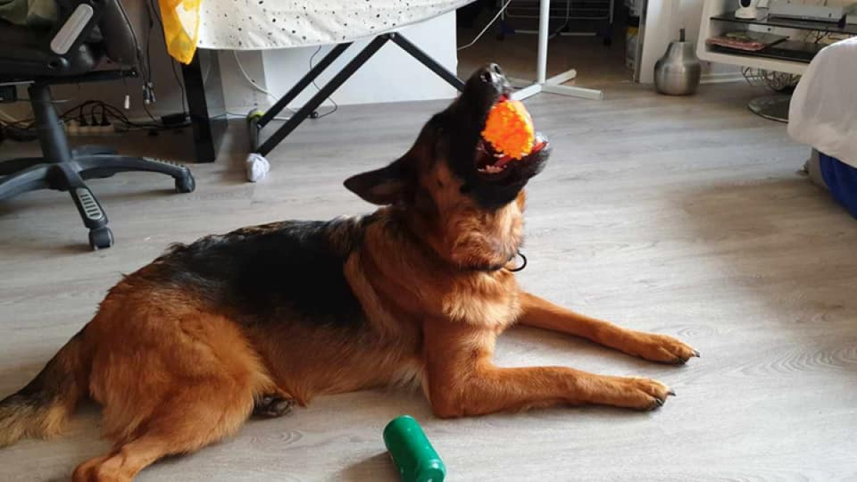 Mon ancien propriétaire m'utilisait comme chien de sécurité. Je vivais dans une caisse dans un coffre de voiture, donc je ne connaissais pas le monde qui m'entoure, hormis à travers des grilles. La BAB a commencé à me faire découvrir les promenades, les jeux, la bonne nourriture... J'y ai vraiment pris goût ! Mais je réagis encore beaucoup aux stimuli extérieurs et aux émotions des gens. Je suis un véritable détecteur d'émotions, impossible de me berner !