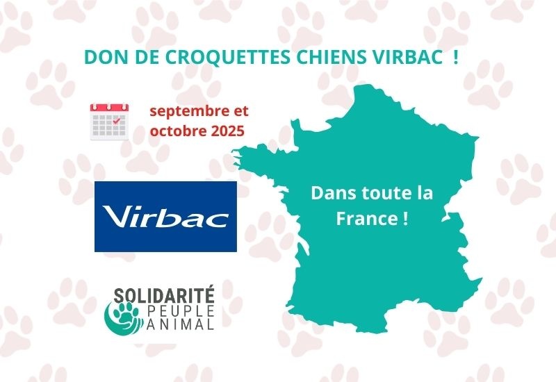 Grâce à notre partenaire VIRBAC, plusieurs centaines de tonnes de CROQUETTES pour CHIENS (et dans une moindre mesure pour chats) de la gamme HPM seront offertes et livrées directement à des associations et refuges dans toute la France.