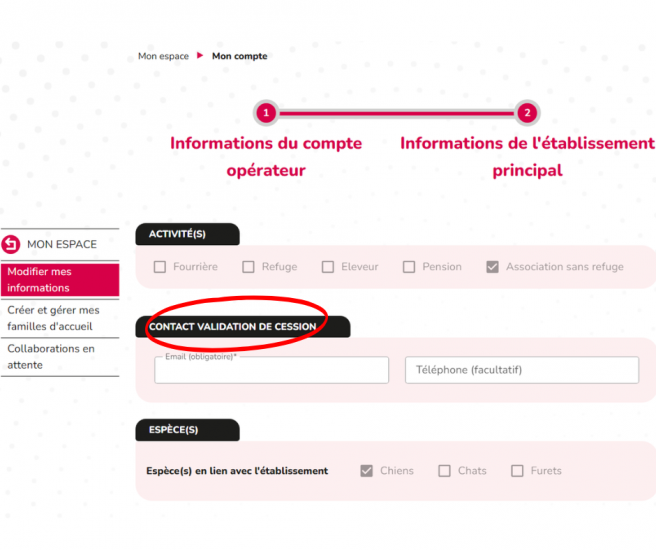 2- Vérifier l'identité de l'association détentrice de l'animal