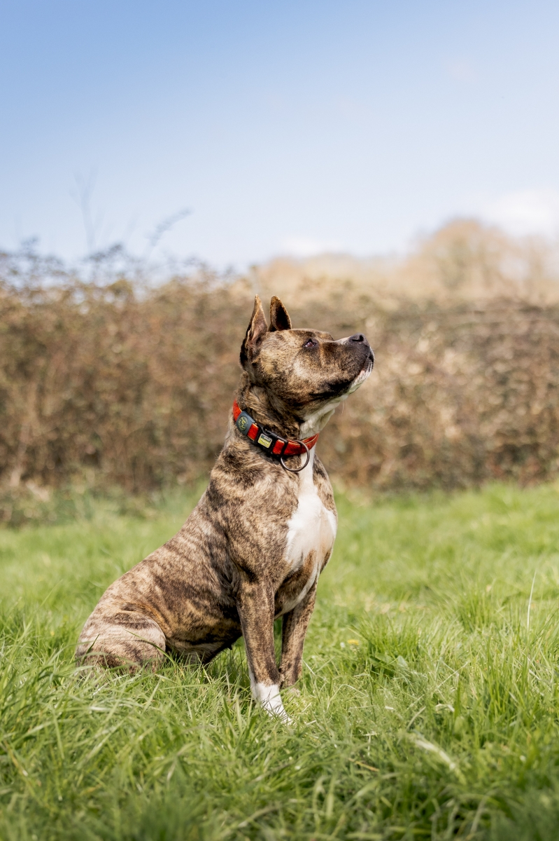 Saya est une American Bully x Bouledogue Americain de presque 7 ans (diagnose ok, chienne non catégorisée) qui est arrivée chez nous suite à une fugue. Son propriétaire a préféré la laisser au refuge.