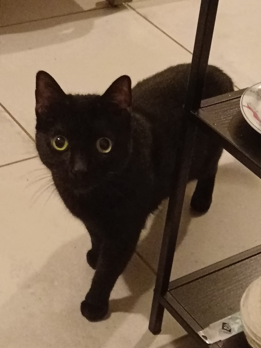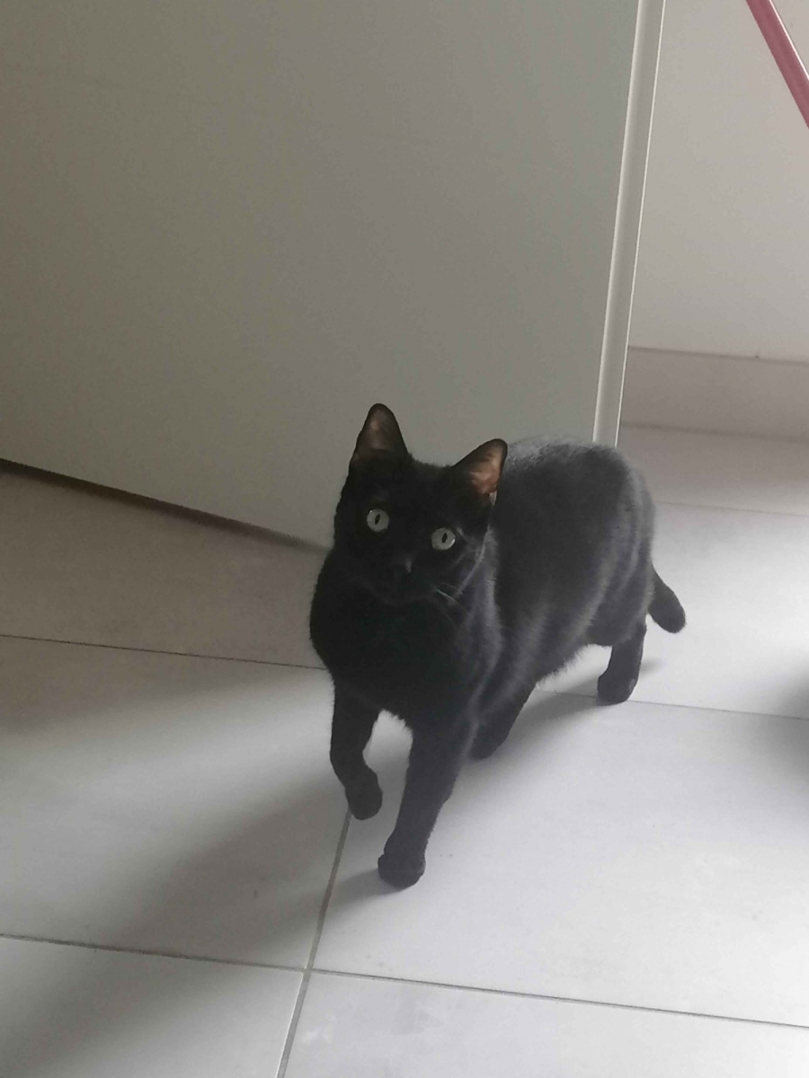 Voici Krokmou, petit chat noir de 5 ans. Il vivait au milieu de nombreux chats et chiens car son propriétaire avait le syndrome de Noé, puis, il a échappé de justesse à l'euthanasie en fourrière. Il est maintenant en famille d'accueil mais reste assez craintif et aurait besoin de trouver une famille à la fois très patiente et 'entreprenante'.