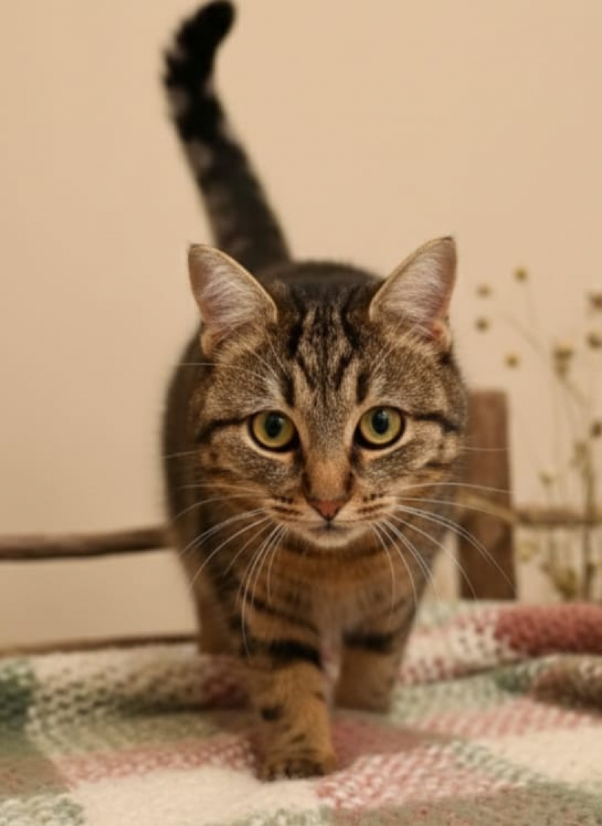 Aivy est une jeune chatte tabby d’1 an dont les humains ont déménagé… sans elle 😿