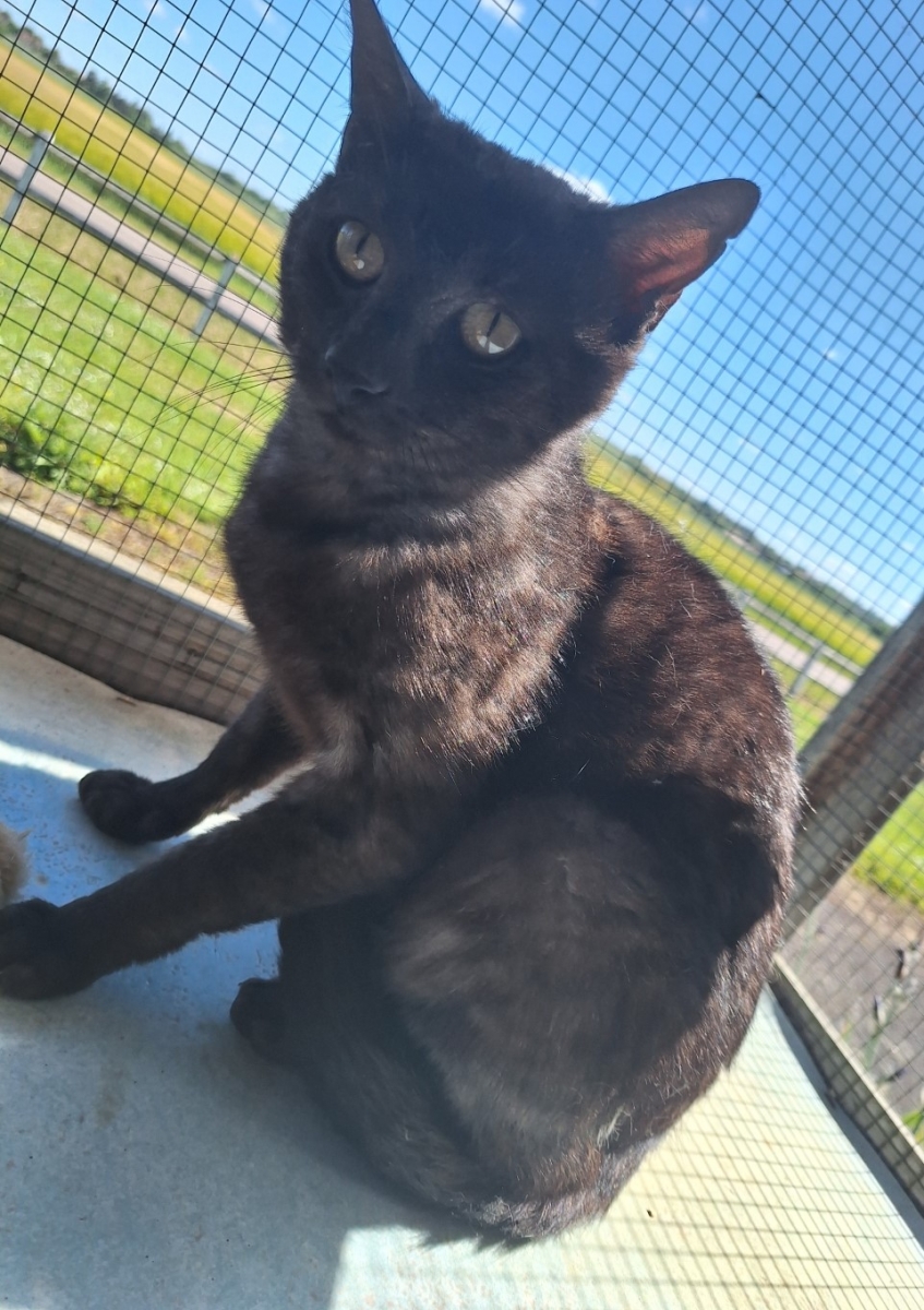 Réglisse est né le 1er mars 2024. Il a été déposé un jour d'ouverture devant la porte du bric-à-brac. C'est un chat calme, très timide mais il se soigne.