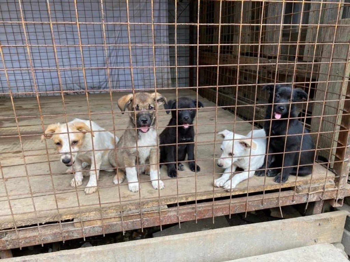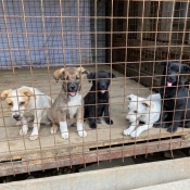 En photo la petite chienne que j'ai adopté il y a 4 ans, en refuge (la louloute complètement à droite).