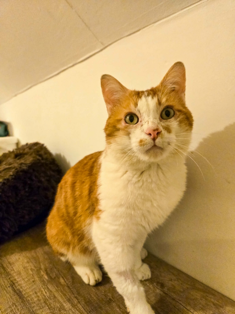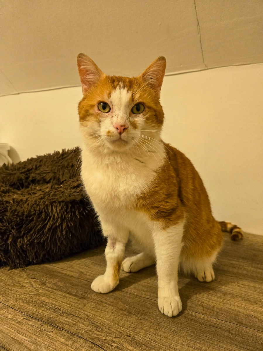 Son petit visage porte les traces de la vie dehors, de ses quelques années de chat errant… mais derrière ces marques se cache un cœur immense.