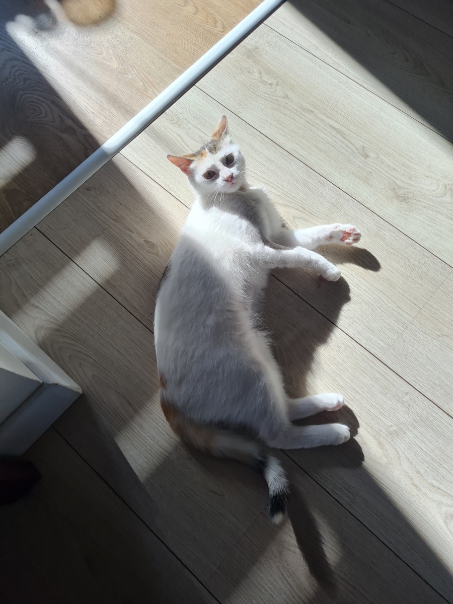 Elle est plutôt calme, adore rester dans son petit nid, s'allonger sur le canapé et a ses petits moments de folie !