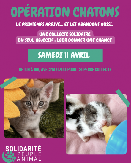 Quatre étudiants de Sup’Expertise, dans le cadre d’un projet scolaire, organisent une opération solidaire destinée à nourrir les chatons orphelins avec l’accompagnement de Solidarité Peuple Animal. Cette initiative prend la forme de deux collectes au profit de trois associations de la région parisienne accueillant des chatons, afin de répondre aux besoins accrus des refuges pendant la saison des chatons. Cette période du printemps correspond au pic des naissances et les abandons se multiplient, mettant les associations sous forte pression.