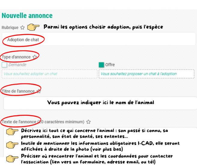 Une annonce devant comporter le numéro d’identification sur l’Icad de l’animal, il n’est pas possible de publier une annonce pour réserver un chiot ou un chaton si ce dernier n’est pas encore identifié car trop jeune.
